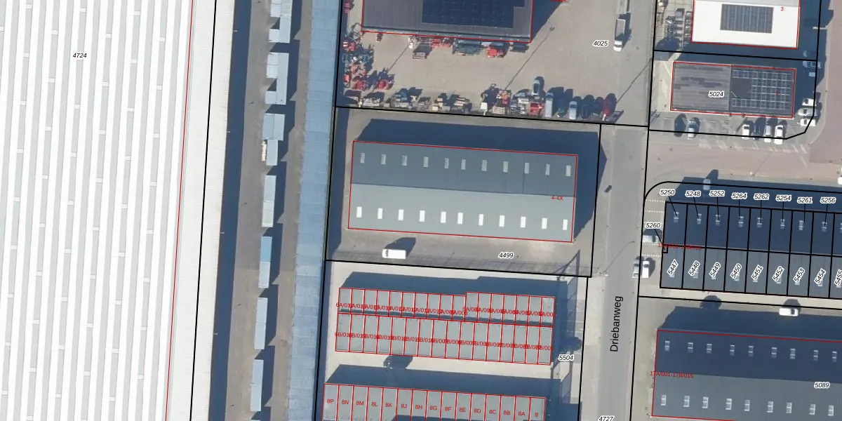 Het perceel waarop Driebanweg 4-U staat heeft een oppervlakte van 2335 m². Dit is een zeer groot perceel. De perceeloppervlakte wordt geregistreerd door het Kadaster. Gedetailleerde informatie over de maten van dit perceel kunt u vinden in het rapport Kadastrale kaart met maatvoering van Driebanweg 4-U.