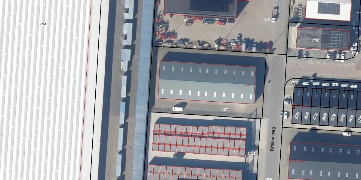 Het perceel waarop Driebanweg 4-V staat heeft een oppervlakte van 2335 m². Dit is een zeer groot perceel. De perceeloppervlakte wordt geregistreerd door het Kadaster. Gedetailleerde informatie over de maten van dit perceel kunt u vinden in het rapport Kadastrale kaart met maatvoering van Driebanweg 4-V.