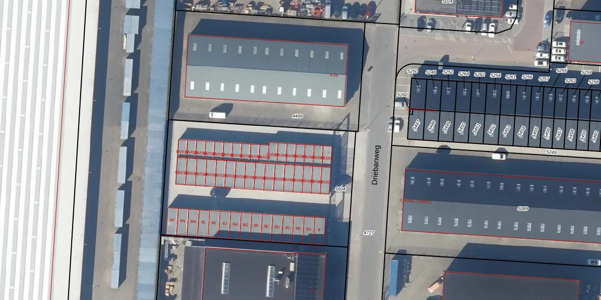 Het perceel waarop Driebanweg 6-A-004 staat heeft een oppervlakte van 2410 m². Dit is een zeer groot perceel. De perceeloppervlakte wordt geregistreerd door het Kadaster. Gedetailleerde informatie over de maten van dit perceel kunt u vinden in het rapport Kadastrale kaart met maatvoering van Driebanweg 6-A-004.