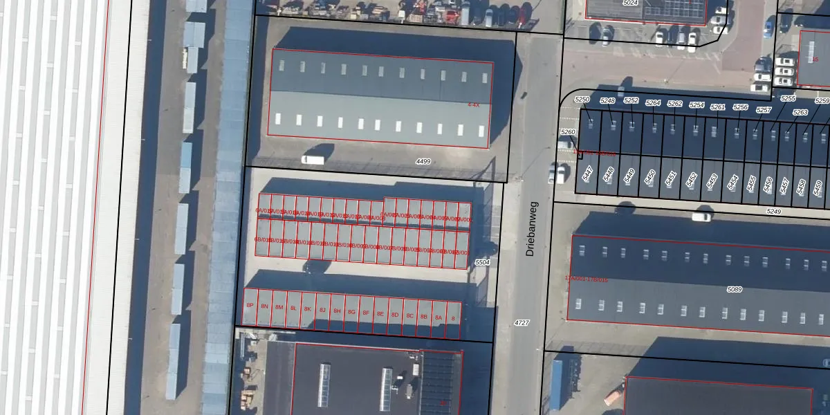 Het perceel waarop Driebanweg 6-A-005 staat heeft een oppervlakte van 2410 m². Dit is een zeer groot perceel. De perceeloppervlakte wordt geregistreerd door het Kadaster. Gedetailleerde informatie over de maten van dit perceel kunt u vinden in het rapport Kadastrale kaart met maatvoering van Driebanweg 6-A-005.