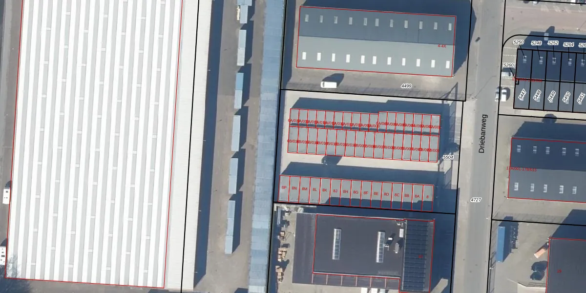 Het perceel waarop Driebanweg 6-B-016 staat heeft een oppervlakte van 2410 m². Dit is een zeer groot perceel. De perceeloppervlakte wordt geregistreerd door het Kadaster. Gedetailleerde informatie over de maten van dit perceel kunt u vinden in het rapport Kadastrale kaart met maatvoering van Driebanweg 6-B-016.