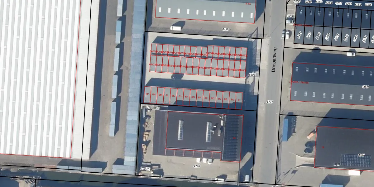 Het perceel waarop Driebanweg 8-H staat heeft een oppervlakte van 2410 m². Dit is een zeer groot perceel. De perceeloppervlakte wordt geregistreerd door het Kadaster. Gedetailleerde informatie over de maten van dit perceel kunt u vinden in het rapport Kadastrale kaart met maatvoering van Driebanweg 8-H.