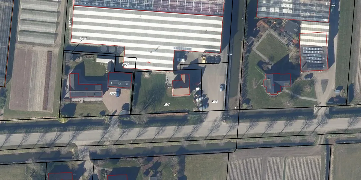 Gebruik de zoekbalk of klik op een perceel voor informatie over de adressen binnen dit perceel.