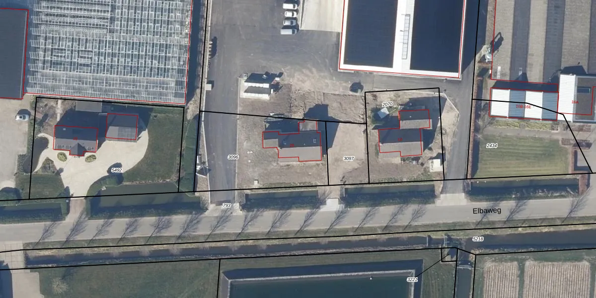 Het perceel waarop Elbaweg 20 staat heeft een oppervlakte van 1065 m². Dit is een zeer groot perceel. De perceeloppervlakte wordt geregistreerd door het Kadaster. Gedetailleerde informatie over de maten van dit perceel kunt u vinden in het rapport Kadastrale kaart met maatvoering van Elbaweg 20.