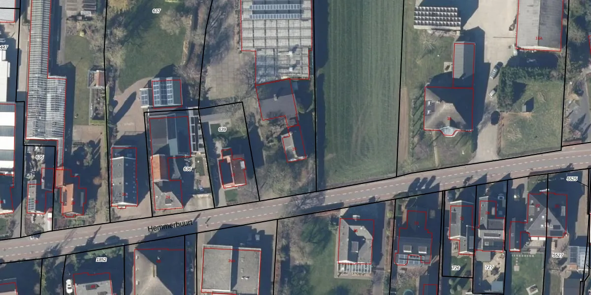 Het perceel waarop Hemmerbuurt 20 staat heeft een oppervlakte van 9150 m². Dit is een zeer groot perceel. De perceeloppervlakte wordt geregistreerd door het Kadaster. Gedetailleerde informatie over de maten van dit perceel kunt u vinden in het rapport Kadastrale kaart met maatvoering van Hemmerbuurt 20.
