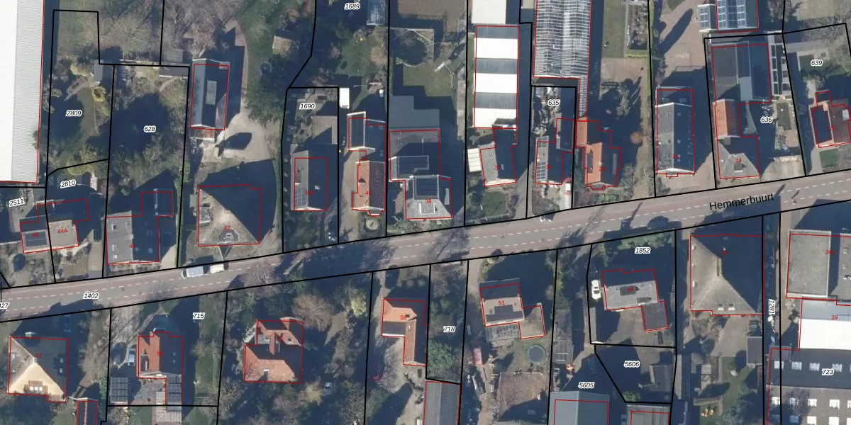 Het perceel waarop Hemmerbuurt 38 staat heeft een oppervlakte van 2450 m². Dit is een zeer groot perceel. De perceeloppervlakte wordt geregistreerd door het Kadaster. Gedetailleerde informatie over de maten van dit perceel kunt u vinden in het rapport Kadastrale kaart met maatvoering van Hemmerbuurt 38.