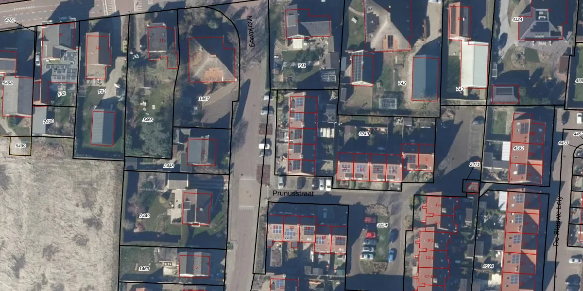 Het perceel waarop Marktweg 7 staat heeft een oppervlakte van 1460 m². Dit is een zeer groot perceel. De perceeloppervlakte wordt geregistreerd door het Kadaster. Gedetailleerde informatie over de maten van dit perceel kunt u vinden in het rapport Kadastrale kaart met maatvoering van Marktweg 7.