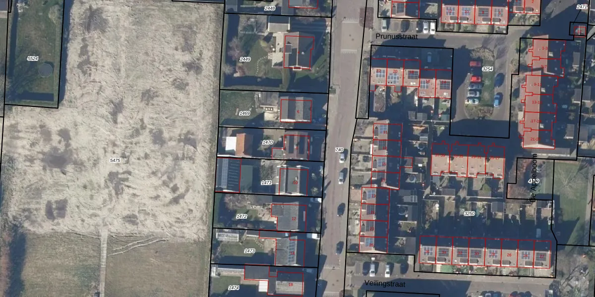Gebruik de zoekbalk of klik op een perceel voor informatie over de adressen binnen dit perceel.