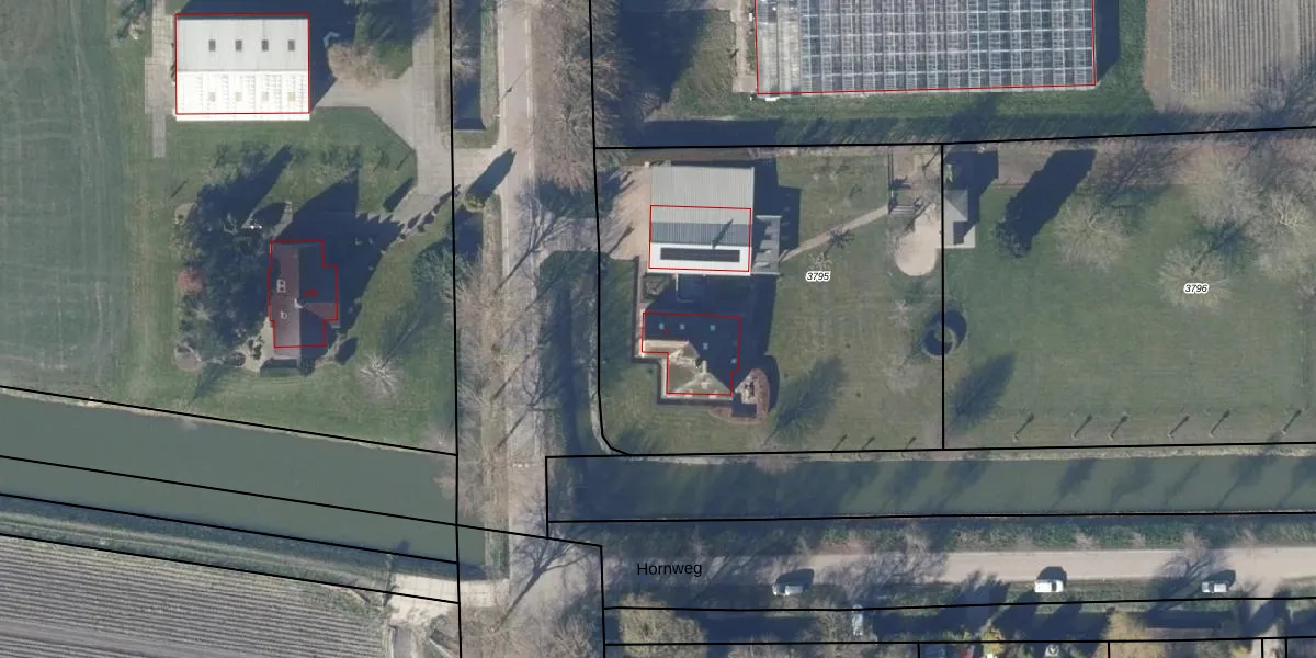 Het adres ligt op het perceel VHZ03-G-3795, dat zich in de kadastrale gemeente Venhuizen bevindt. Het perceel is 2455 m² groot. Dat is kleiner dan de gemiddelde perceeloppervlakte in Venhuizen, dat op 9443,03 m² ligt. Het grootste perceel in de kadastrale gemeente is 4,40 km². Het kleinste perceel heeft een oppervlakte van 0 m². Dit is het enige adres dat aanwezig is op het perceel. In de Basisregistratie Kadaster (BRK) werden de grenzen van het perceel geregistreerd op 03-10-2001.