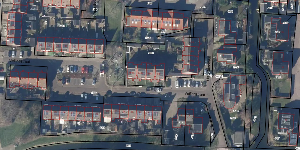Het perceel waarop Veilingstraat 10 staat heeft een oppervlakte van 1433 m². Dit is een zeer groot perceel. De perceeloppervlakte wordt geregistreerd door het Kadaster. Gedetailleerde informatie over de maten van dit perceel kunt u vinden in het rapport Kadastrale kaart met maatvoering van Veilingstraat 10.