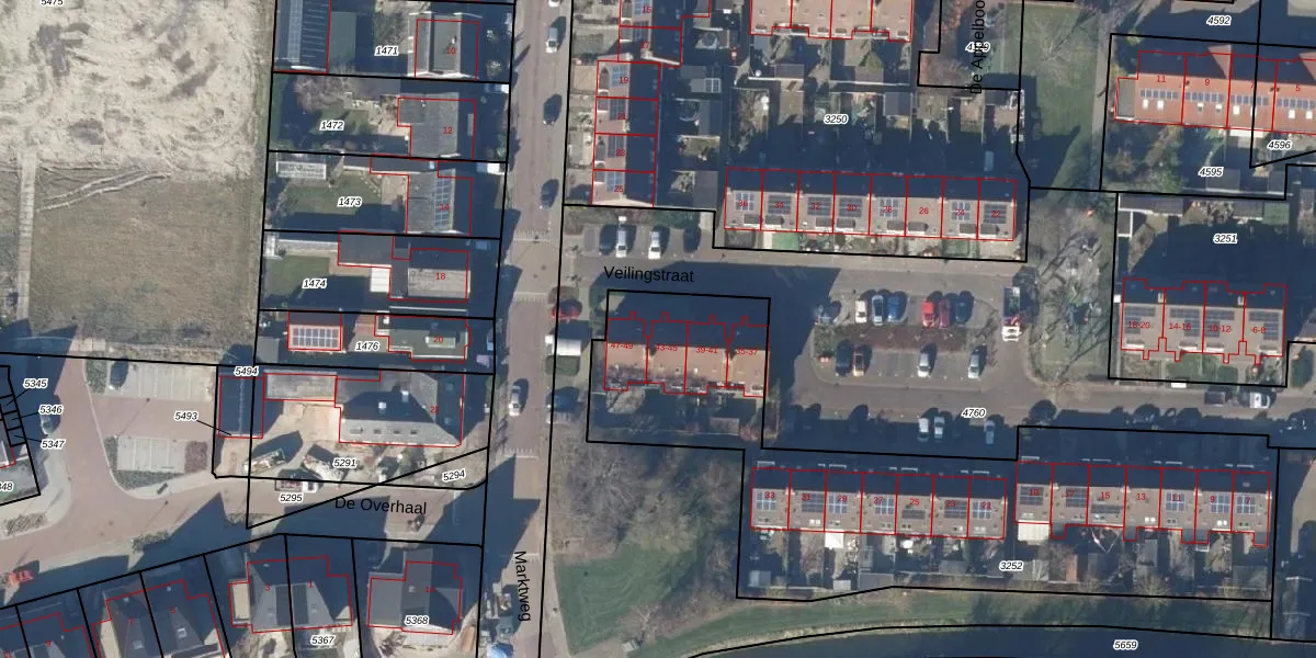 Het perceel waarop Veilingstraat 43 staat heeft een oppervlakte van 2450 m². Dit is een zeer groot perceel. De perceeloppervlakte wordt geregistreerd door het Kadaster. Gedetailleerde informatie over de maten van dit perceel kunt u vinden in het rapport Kadastrale kaart met maatvoering van Veilingstraat 43.