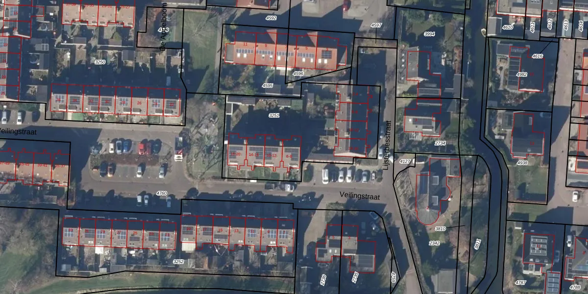 Het perceel waarop Veilingstraat 8 staat heeft een oppervlakte van 1433 m². Dit is een zeer groot perceel. De perceeloppervlakte wordt geregistreerd door het Kadaster. Gedetailleerde informatie over de maten van dit perceel kunt u vinden in het rapport Kadastrale kaart met maatvoering van Veilingstraat 8.