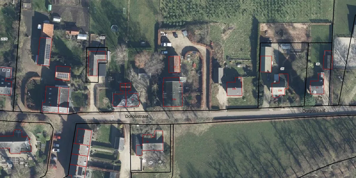 Het perceel waarop Dorpsstraat 9-b staat heeft een oppervlakte van 4,4 ha. Dit is een zeer groot perceel. De perceeloppervlakte wordt geregistreerd door het Kadaster. Gedetailleerde informatie over de maten van dit perceel kunt u vinden in het rapport Kadastrale kaart met maatvoering van Dorpsstraat 9-b.