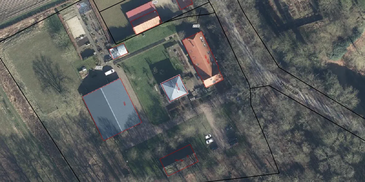 Het perceel waarop Veldstraat 79-n staat heeft een oppervlakte van 1,1 ha. Dit is een zeer groot perceel. De perceeloppervlakte wordt geregistreerd door het Kadaster. Gedetailleerde informatie over de maten van dit perceel kunt u vinden in het rapport Kadastrale kaart met maatvoering van Veldstraat 79-n.