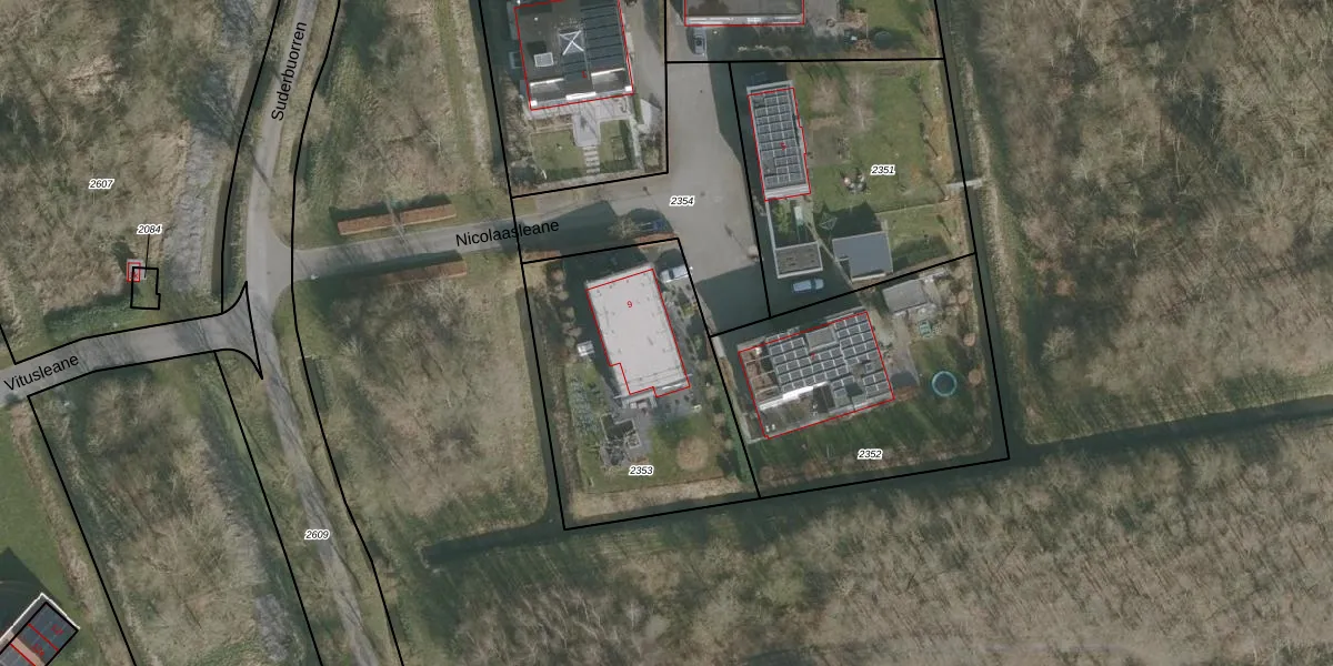Nicolaasleane 9 is gelegen op kadastraal perceel HZM00K2353. Deze kadastrale aanduiding is uniek en wordt gebruikt door het Kadaster om eigendomsrechten en andere zakelijke rechten vast te leggen. Het perceel maakt onderdeel uit van de kadastrale gemeente Huizum.