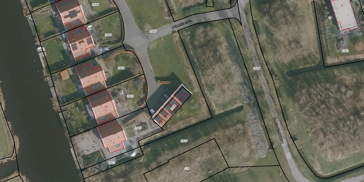 Vitusleane 12-f is gelegen op kadastraal perceel HZM00K2604. Deze kadastrale aanduiding is uniek en wordt gebruikt door het Kadaster om eigendomsrechten en andere zakelijke rechten vast te leggen. Het perceel maakt onderdeel uit van de kadastrale gemeente Huizum.