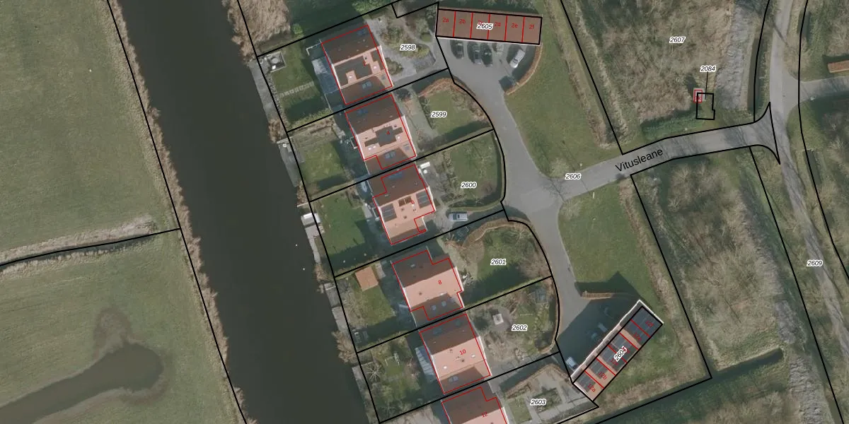 Vitusleane 6 is gelegen op kadastraal perceel HZM00K2600. Deze kadastrale aanduiding is uniek en wordt gebruikt door het Kadaster om eigendomsrechten en andere zakelijke rechten vast te leggen. Het perceel maakt onderdeel uit van de kadastrale gemeente Huizum.
