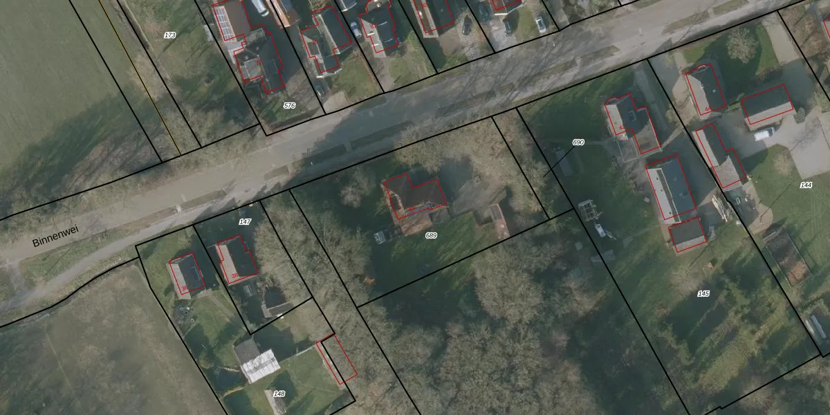 Binnenwei 40 is gelegen op kadastraal perceel LPH00J689. Deze kadastrale aanduiding is uniek en wordt gebruikt door het Kadaster om eigendomsrechten en andere zakelijke rechten vast te leggen. Het perceel maakt onderdeel uit van de kadastrale gemeente Lippenhuizen.