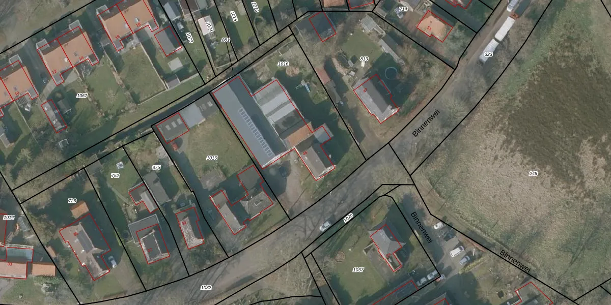 Het perceel waarop Binnenwei 45 staat heeft een oppervlakte van 1595 m². Dit is een zeer groot perceel. De perceeloppervlakte wordt geregistreerd door het Kadaster. Gedetailleerde informatie over de maten van dit perceel kunt u vinden in het rapport Kadastrale kaart met maatvoering van Binnenwei 45.