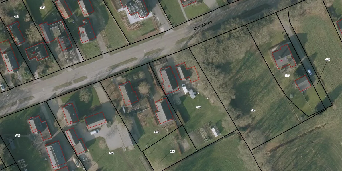 Binnenwei 48 is gelegen op kadastraal perceel LPH00J645. Deze kadastrale aanduiding is uniek en wordt gebruikt door het Kadaster om eigendomsrechten en andere zakelijke rechten vast te leggen. Het perceel maakt onderdeel uit van de kadastrale gemeente Lippenhuizen.