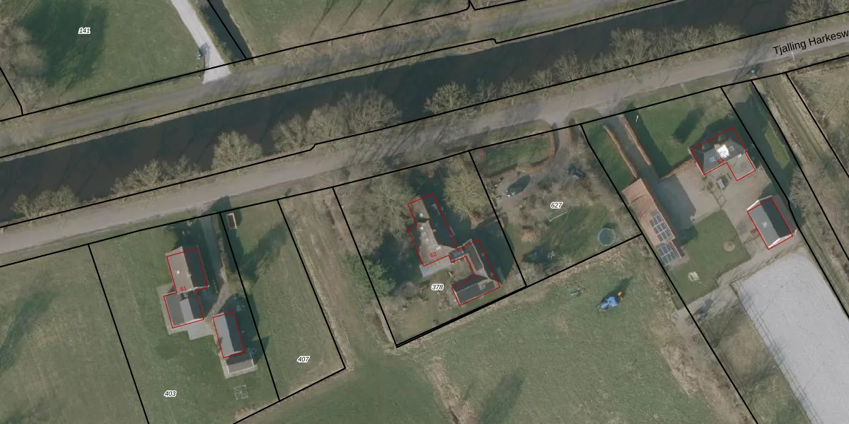 Tjalling Harkeswei 62 is gelegen op kadastraal perceel LPH00J378. Deze kadastrale aanduiding is uniek en wordt gebruikt door het Kadaster om eigendomsrechten en andere zakelijke rechten vast te leggen. Het perceel maakt onderdeel uit van de kadastrale gemeente Lippenhuizen.
