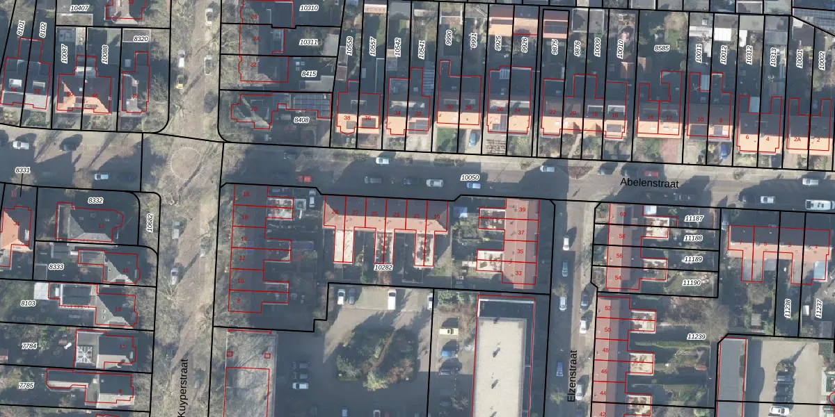 Het perceel waarop Abelenstraat 21 staat heeft een oppervlakte van 2097 m². Dit is een zeer groot perceel. De perceeloppervlakte wordt geregistreerd door het Kadaster. Gedetailleerde informatie over de maten van dit perceel kunt u vinden in het rapport Kadastrale kaart met maatvoering van Abelenstraat 21.