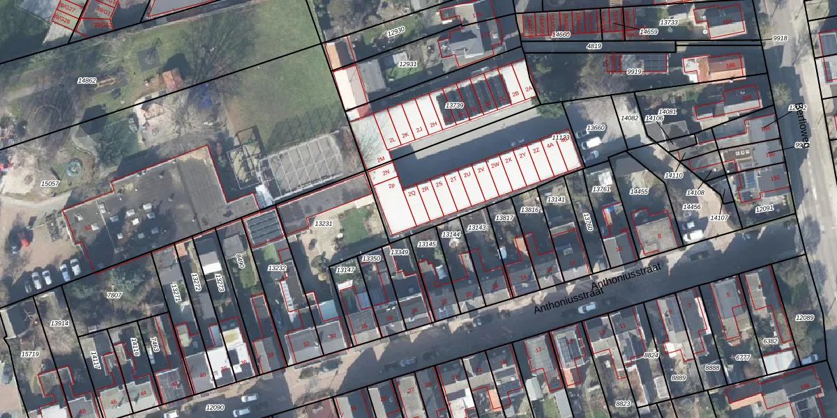 Het perceel waarop Anthoniusstraat 2-Q staat heeft een oppervlakte van 882 m². Dit is een groot perceel. De perceeloppervlakte wordt geregistreerd door het Kadaster. Gedetailleerde informatie over de maten van dit perceel kunt u vinden in het rapport Kadastrale kaart met maatvoering van Anthoniusstraat 2-Q.