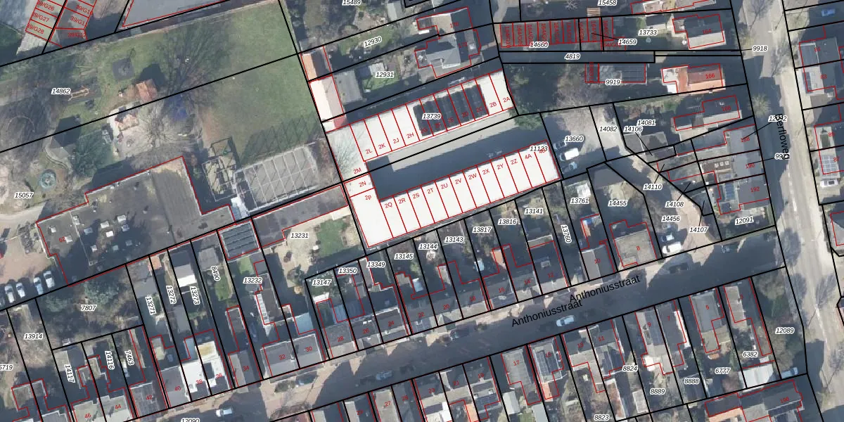 Het perceel waarop Anthoniusstraat 2-S staat heeft een oppervlakte van 882 m². Dit is een groot perceel. De perceeloppervlakte wordt geregistreerd door het Kadaster. Gedetailleerde informatie over de maten van dit perceel kunt u vinden in het rapport Kadastrale kaart met maatvoering van Anthoniusstraat 2-S.