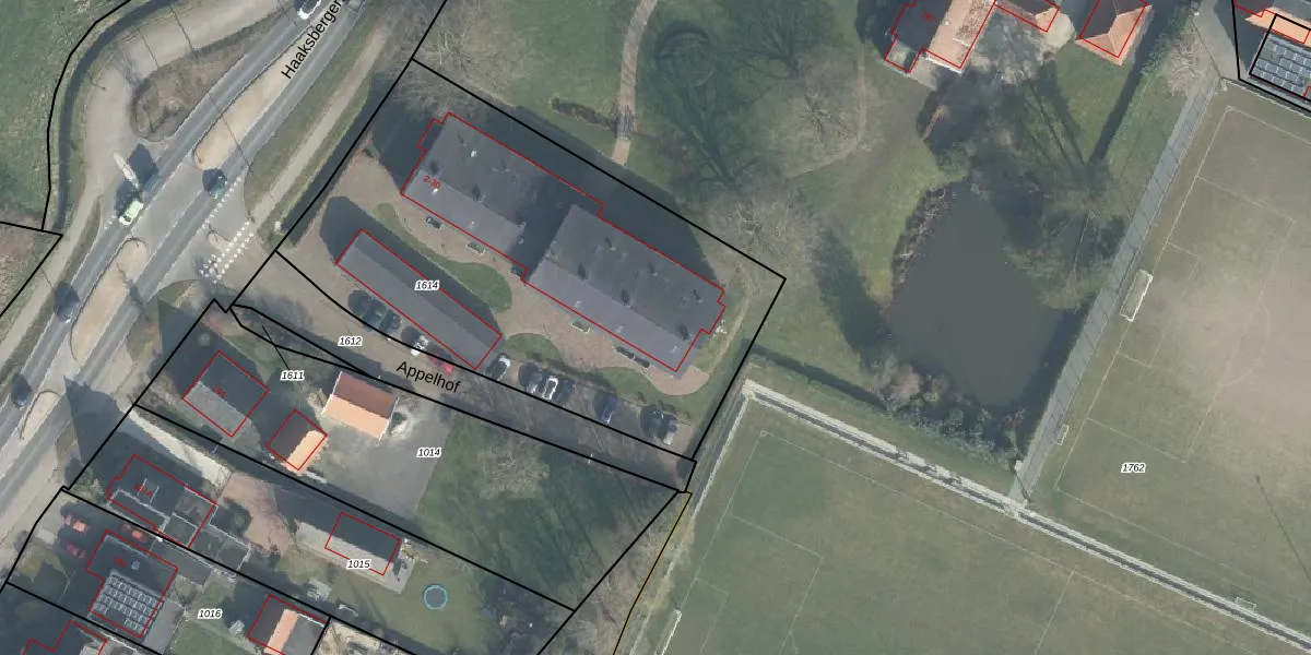 Het perceel waarop Appelhof 12 staat heeft een oppervlakte van 2450 m². Dit is een zeer groot perceel. De perceeloppervlakte wordt geregistreerd door het Kadaster. Gedetailleerde informatie over de maten van dit perceel kunt u vinden in het rapport Kadastrale kaart met maatvoering van Appelhof 12.