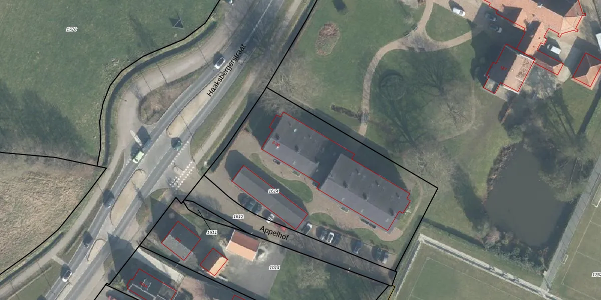 Het perceel waarop Appelhof 16 staat heeft een oppervlakte van 2450 m². Dit is een zeer groot perceel. De perceeloppervlakte wordt geregistreerd door het Kadaster. Gedetailleerde informatie over de maten van dit perceel kunt u vinden in het rapport Kadastrale kaart met maatvoering van Appelhof 16.