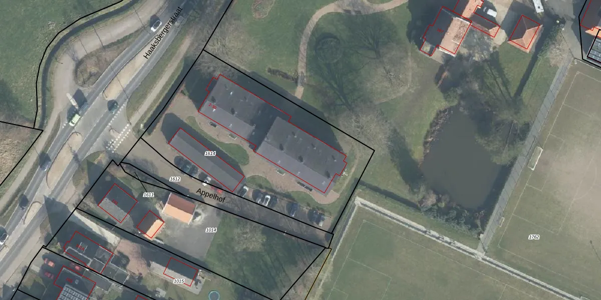 Het perceel waarop Appelhof 22 staat heeft een oppervlakte van 2450 m². Dit is een zeer groot perceel. De perceeloppervlakte wordt geregistreerd door het Kadaster. Gedetailleerde informatie over de maten van dit perceel kunt u vinden in het rapport Kadastrale kaart met maatvoering van Appelhof 22.