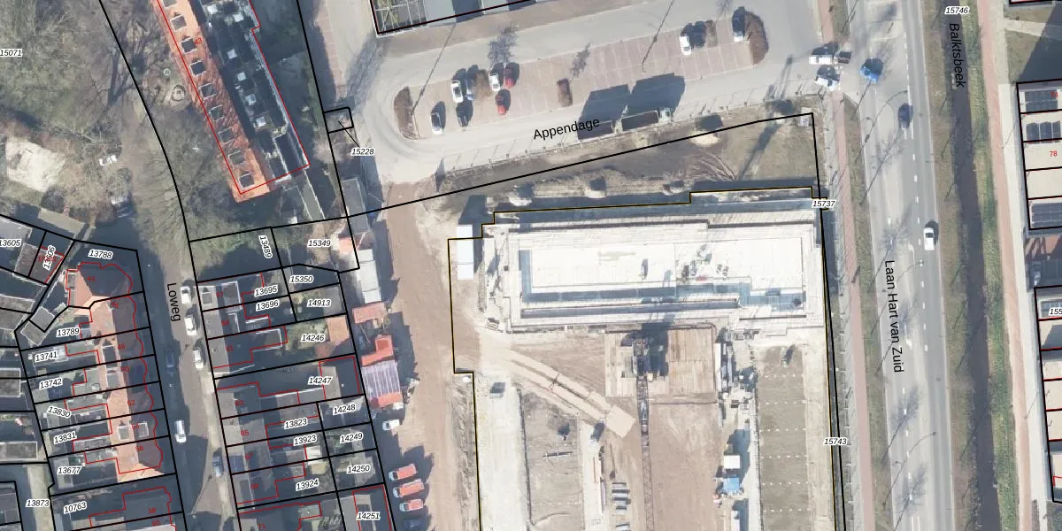 Het perceel waarop Appendage 11 staat heeft een oppervlakte van 9359 m². Dit is een zeer groot perceel. De perceeloppervlakte wordt geregistreerd door het Kadaster. Gedetailleerde informatie over de maten van dit perceel kunt u vinden in het rapport Kadastrale kaart met maatvoering van Appendage 11.