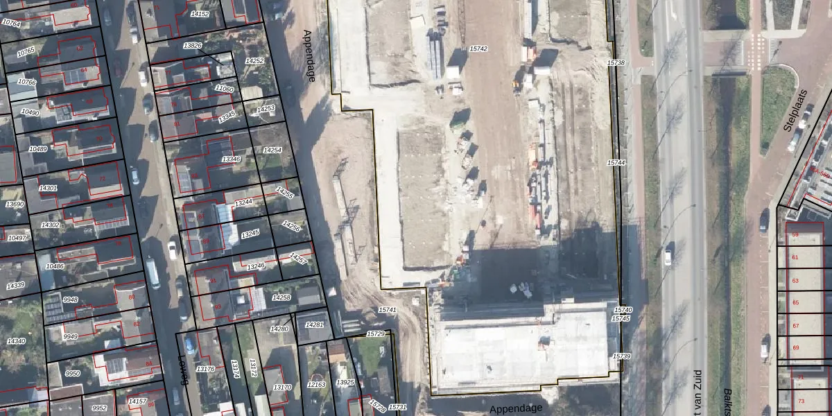 Het perceel waarop Appendage 125 staat heeft een oppervlakte van 9359 m². Dit is een zeer groot perceel. De perceeloppervlakte wordt geregistreerd door het Kadaster. Gedetailleerde informatie over de maten van dit perceel kunt u vinden in het rapport Kadastrale kaart met maatvoering van Appendage 125.