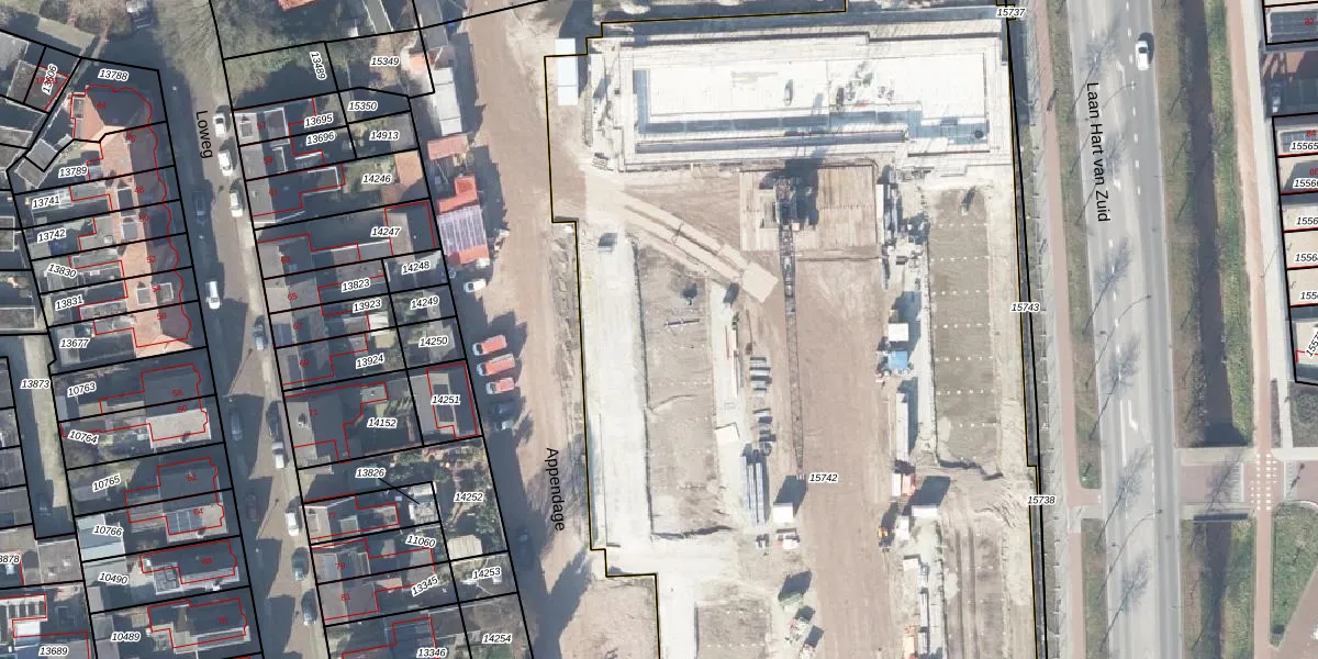 Het perceel waarop Appendage 143 staat heeft een oppervlakte van 9359 m². Dit is een zeer groot perceel. De perceeloppervlakte wordt geregistreerd door het Kadaster. Gedetailleerde informatie over de maten van dit perceel kunt u vinden in het rapport Kadastrale kaart met maatvoering van Appendage 143.