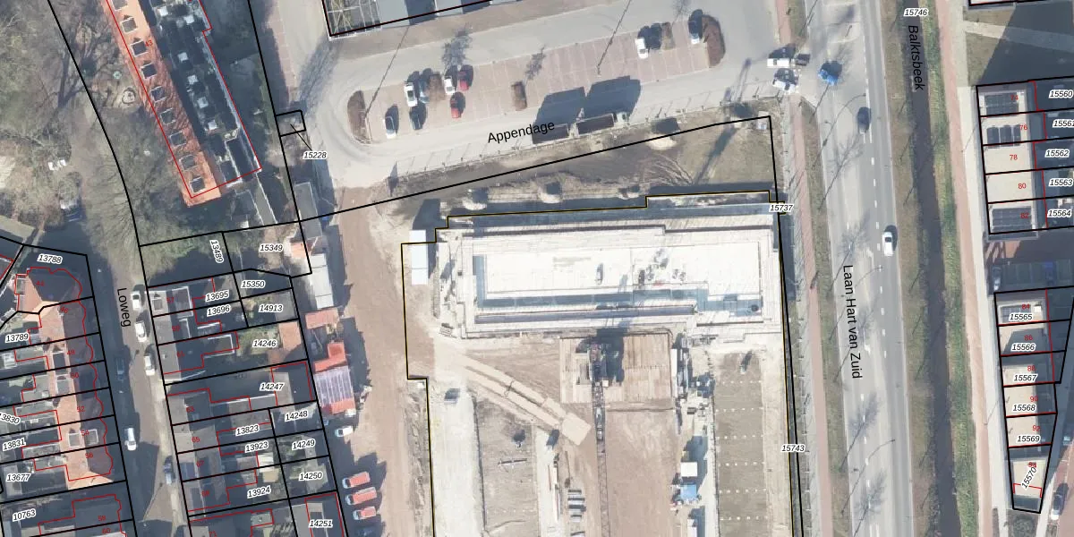 Het perceel waarop Appendage 15 staat heeft een oppervlakte van 9359 m². Dit is een zeer groot perceel. De perceeloppervlakte wordt geregistreerd door het Kadaster. Gedetailleerde informatie over de maten van dit perceel kunt u vinden in het rapport Kadastrale kaart met maatvoering van Appendage 15.