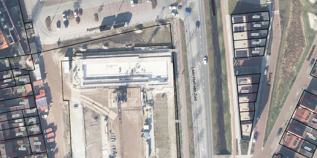 Het perceel waarop Appendage 33 staat heeft een oppervlakte van 9359 m². Dit is een zeer groot perceel. De perceeloppervlakte wordt geregistreerd door het Kadaster. Gedetailleerde informatie over de maten van dit perceel kunt u vinden in het rapport Kadastrale kaart met maatvoering van Appendage 33.