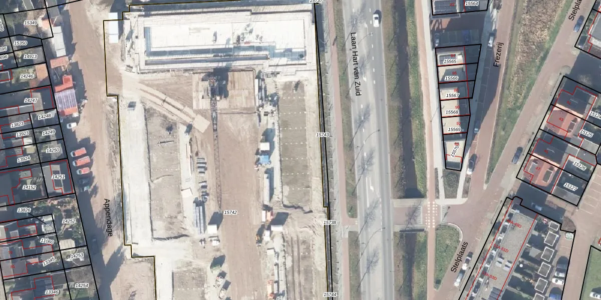 Het perceel waarop Appendage 67 staat heeft een oppervlakte van 9359 m². Dit is een zeer groot perceel. De perceeloppervlakte wordt geregistreerd door het Kadaster. Gedetailleerde informatie over de maten van dit perceel kunt u vinden in het rapport Kadastrale kaart met maatvoering van Appendage 67.