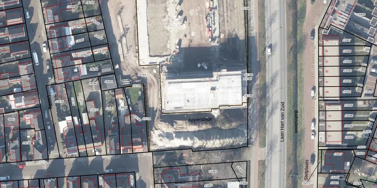 Het perceel waarop Appendage 97 staat heeft een oppervlakte van 9359 m². Dit is een zeer groot perceel. De perceeloppervlakte wordt geregistreerd door het Kadaster. Gedetailleerde informatie over de maten van dit perceel kunt u vinden in het rapport Kadastrale kaart met maatvoering van Appendage 97.