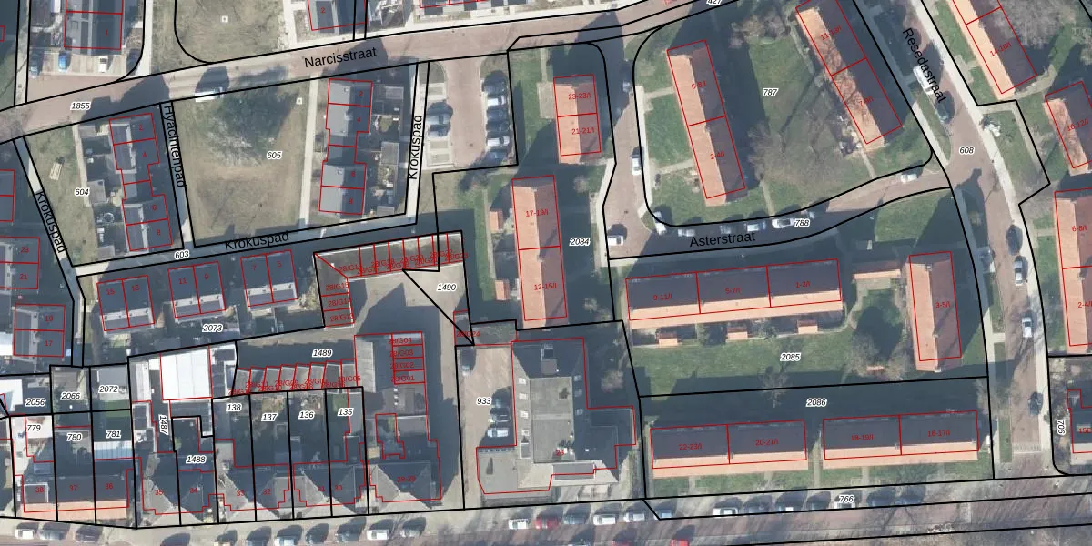 Het perceel waarop Asterstraat 15 staat heeft een oppervlakte van 1215 m². Dit is een zeer groot perceel. De perceeloppervlakte wordt geregistreerd door het Kadaster. Gedetailleerde informatie over de maten van dit perceel kunt u vinden in het rapport Kadastrale kaart met maatvoering van Asterstraat 15.
