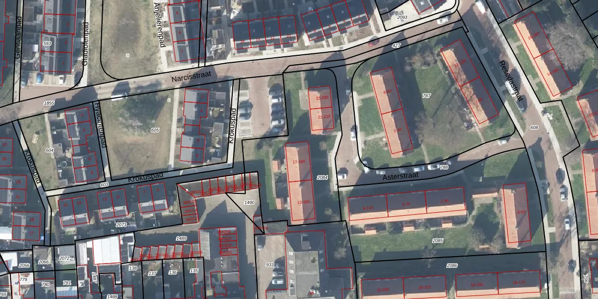 Het perceel waarop Asterstraat 19-I staat heeft een oppervlakte van 1215 m². Dit is een zeer groot perceel. De perceeloppervlakte wordt geregistreerd door het Kadaster. Gedetailleerde informatie over de maten van dit perceel kunt u vinden in het rapport Kadastrale kaart met maatvoering van Asterstraat 19-I.