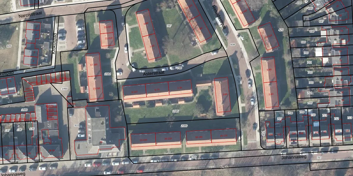 Het perceel waarop Asterstraat 3-I staat heeft een oppervlakte van 1885 m². Dit is een zeer groot perceel. De perceeloppervlakte wordt geregistreerd door het Kadaster. Gedetailleerde informatie over de maten van dit perceel kunt u vinden in het rapport Kadastrale kaart met maatvoering van Asterstraat 3-I.