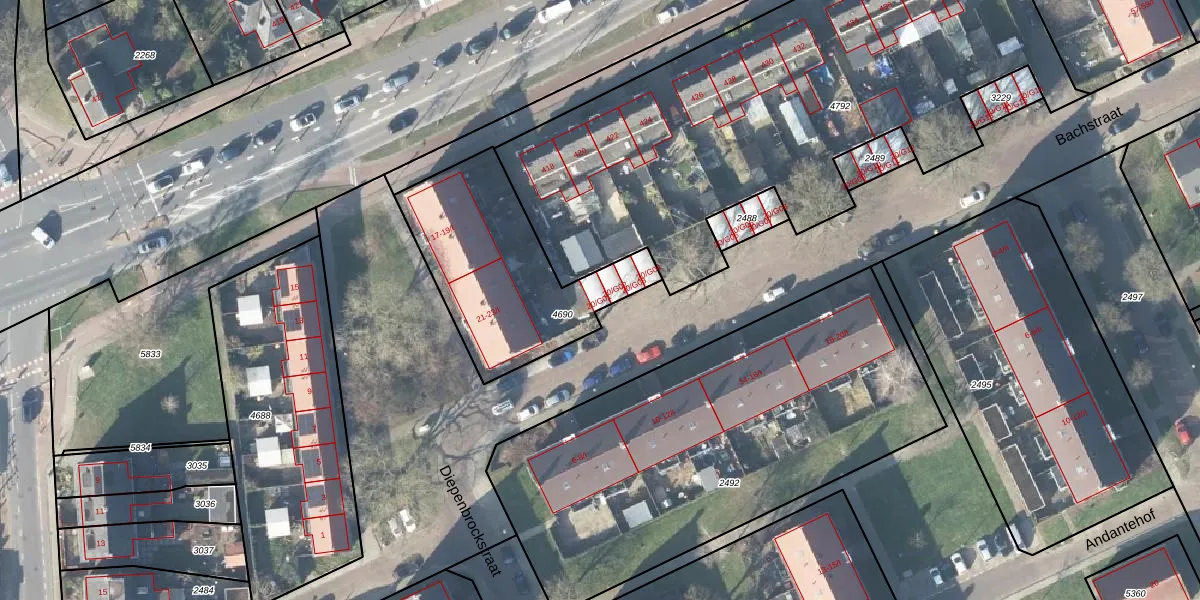 Het perceel waarop Bachstraat 20-G01 staat heeft een oppervlakte van 761 m². Dit is een groot perceel. De perceeloppervlakte wordt geregistreerd door het Kadaster. Gedetailleerde informatie over de maten van dit perceel kunt u vinden in het rapport Kadastrale kaart met maatvoering van Bachstraat 20-G01.