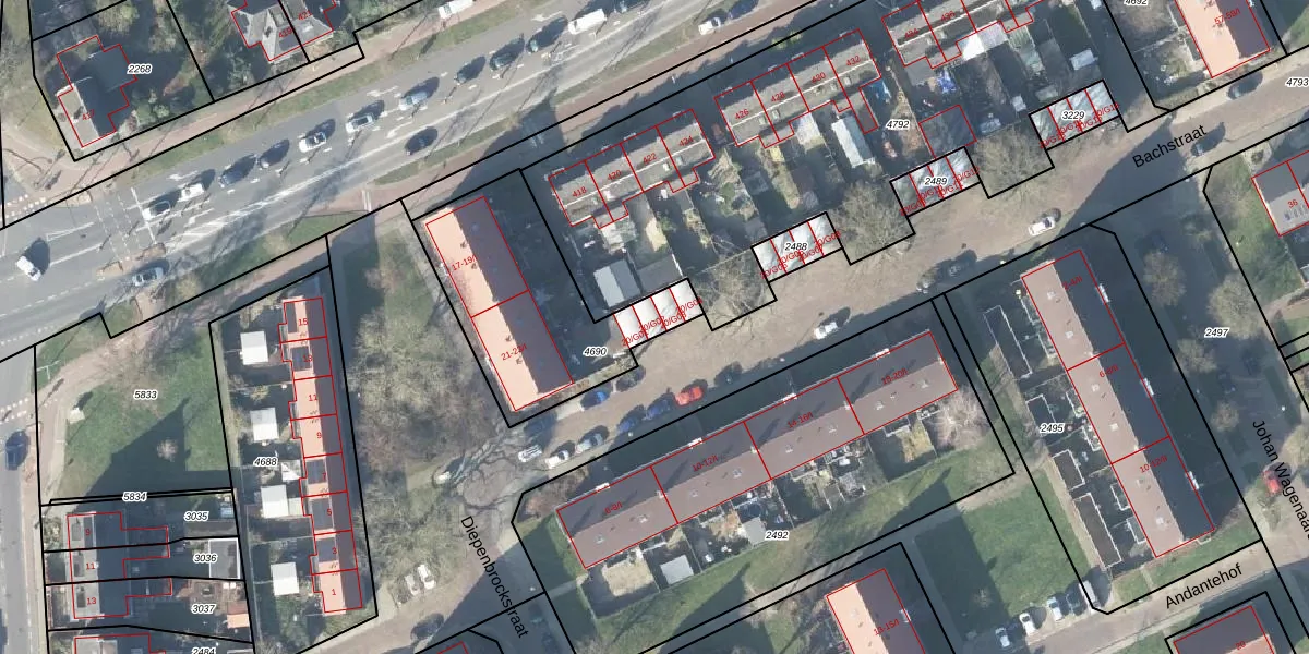 Het perceel waarop Bachstraat 20-G02 staat heeft een oppervlakte van 761 m². Dit is een groot perceel. De perceeloppervlakte wordt geregistreerd door het Kadaster. Gedetailleerde informatie over de maten van dit perceel kunt u vinden in het rapport Kadastrale kaart met maatvoering van Bachstraat 20-G02.