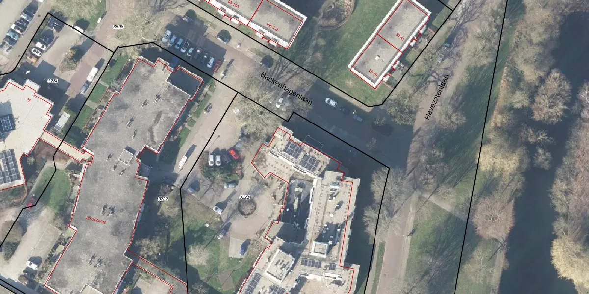 Het perceel waarop Backenhagenlaan 200-121 staat heeft een oppervlakte van 6175 m². Dit is een zeer groot perceel. De perceeloppervlakte wordt geregistreerd door het Kadaster. Gedetailleerde informatie over de maten van dit perceel kunt u vinden in het rapport Kadastrale kaart met maatvoering van Backenhagenlaan 200-121.