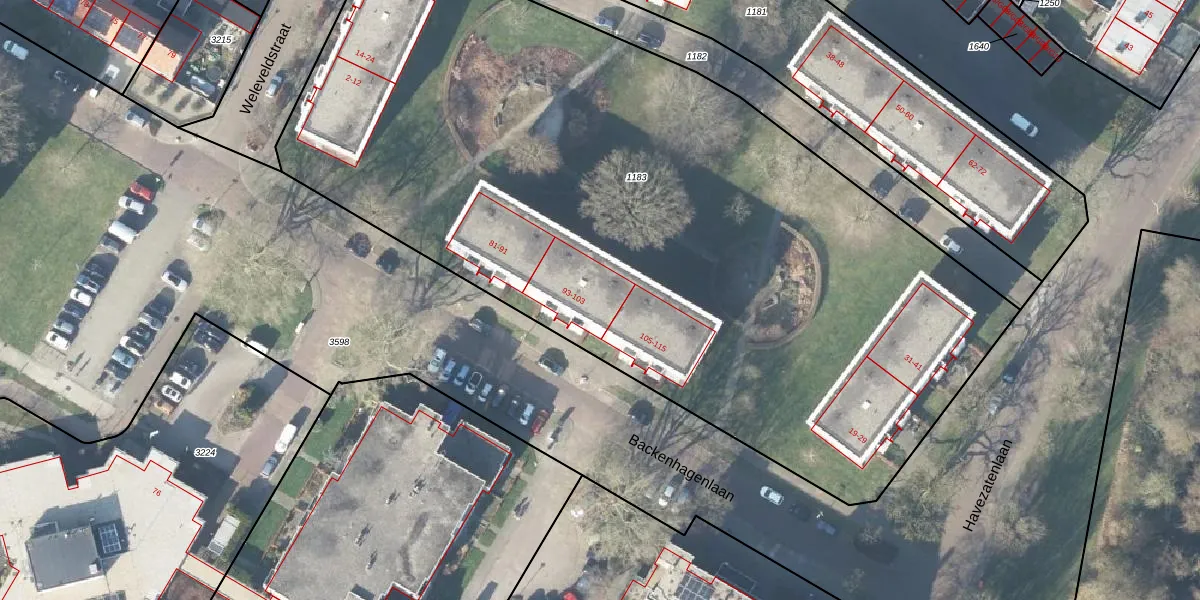 Het perceel waarop Backenhagenlaan 99 staat heeft een oppervlakte van 5540 m². Dit is een zeer groot perceel. De perceeloppervlakte wordt geregistreerd door het Kadaster. Gedetailleerde informatie over de maten van dit perceel kunt u vinden in het rapport Kadastrale kaart met maatvoering van Backenhagenlaan 99.