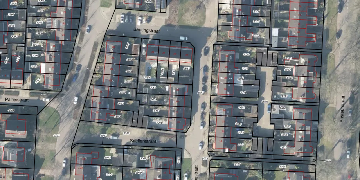 Het perceel waarop Bantingstraat 21 staat heeft een oppervlakte van 196 m². Dit is een middelgroot perceel. De perceeloppervlakte wordt geregistreerd door het Kadaster. Gedetailleerde informatie over de maten van dit perceel kunt u vinden in het rapport Kadastrale kaart met maatvoering van Bantingstraat 21.