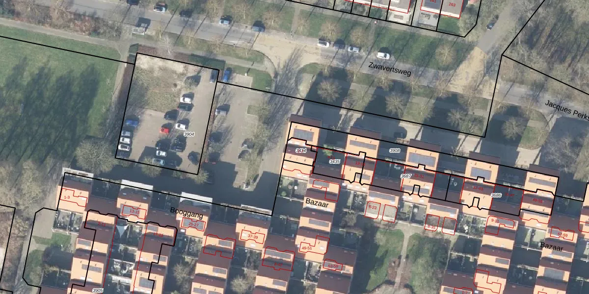 Gebruik de zoekbalk of klik op een perceel voor informatie over de adressen binnen dit perceel.