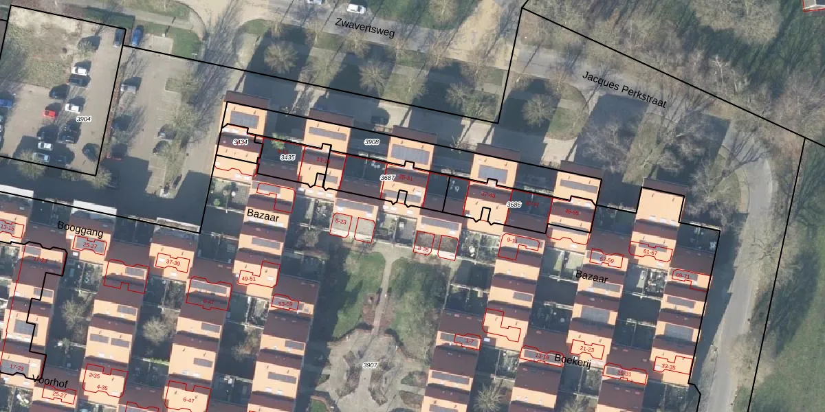 Het perceel waarop Bazaar 31 staat heeft een oppervlakte van 271 m². Dit is een middelgroot perceel. De perceeloppervlakte wordt geregistreerd door het Kadaster. Gedetailleerde informatie over de maten van dit perceel kunt u vinden in het rapport Kadastrale kaart met maatvoering van Bazaar 31.