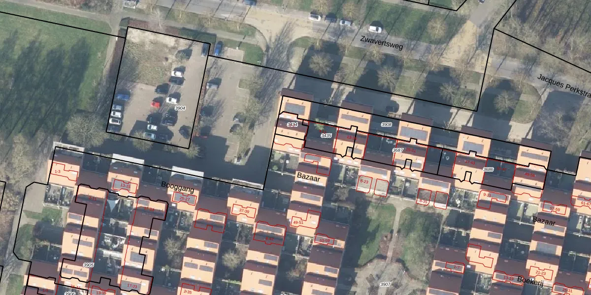 Het perceel waarop Bazaar 7 staat heeft een oppervlakte van 1,8 ha. Dit is een zeer groot perceel. De perceeloppervlakte wordt geregistreerd door het Kadaster. Gedetailleerde informatie over de maten van dit perceel kunt u vinden in het rapport Kadastrale kaart met maatvoering van Bazaar 7.