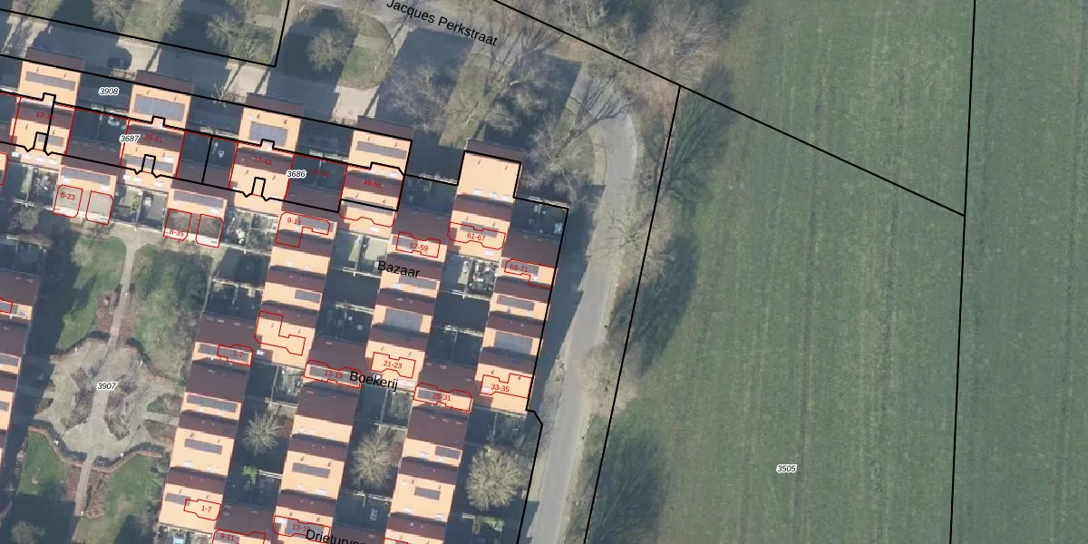 Het perceel waarop Bazaar 71 staat heeft een oppervlakte van 1,8 ha. Dit is een zeer groot perceel. De perceeloppervlakte wordt geregistreerd door het Kadaster. Gedetailleerde informatie over de maten van dit perceel kunt u vinden in het rapport Kadastrale kaart met maatvoering van Bazaar 71.